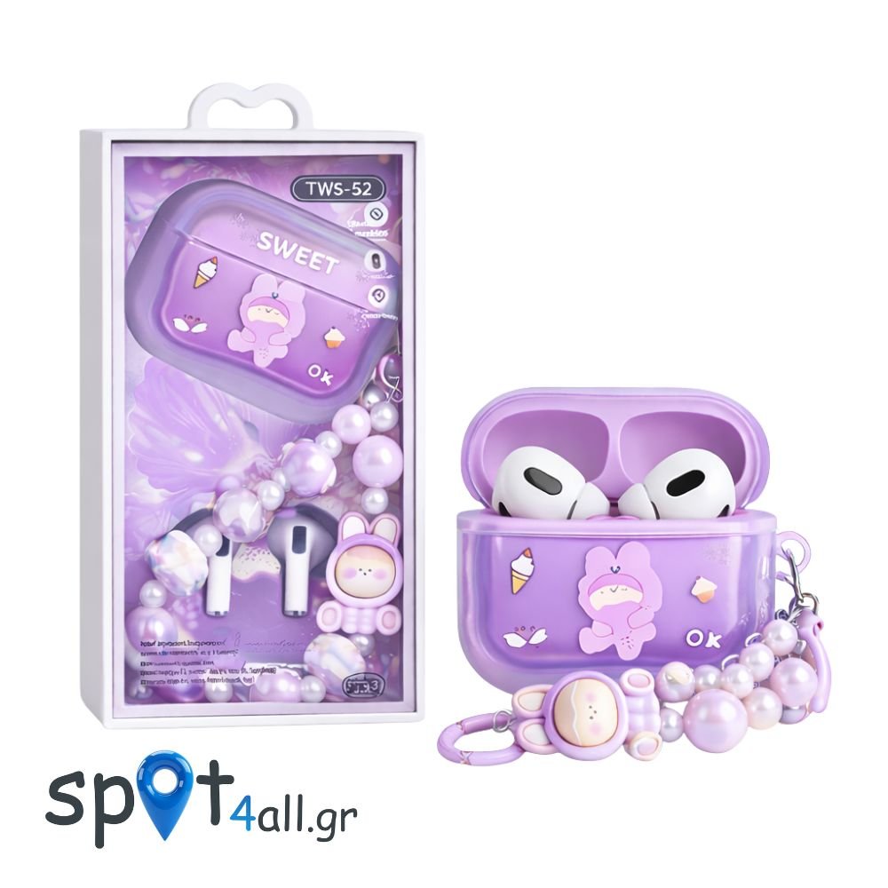 Bluetooth Ακουστικά TWS52 Sweet Edition με Θήκη & Διακοσμητικό Bracelet Μωβ