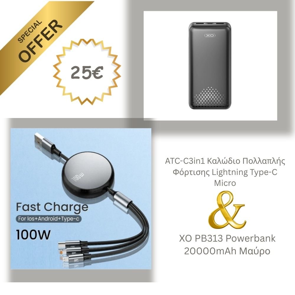 Powerbank 20000mAh μαύρο + Καλώδιο Multi-Charge μόνο 25€!